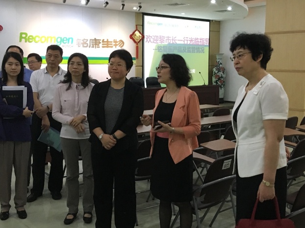 2016年4月26日上午,廣州市副市長(zhǎng)黎明一行來我公司進(jìn)行廣州市藥品安全監(jiān)管實(shí)地調(diào)研,陪同視察的有廣州市食品藥品監(jiān)管局張雅潔局長(zhǎng)、鐘廣靜副局長(zhǎng)和安全監(jiān)管處張志鈞處長(zhǎng)等。楊琴總經(jīng)理著重介紹了我司自主研發(fā)的生物技術(shù)新藥銘復(fù)樂的產(chǎn)品特點(diǎn)、應(yīng)用優(yōu)勢(shì)和技術(shù)先進(jìn)性,指出我司產(chǎn)品是國(guó)內(nèi)首家獲批上市的第三代重組t-PA,是目前唯一可單次靜脈推注的溶栓藥,一針救命,使用方便,適合急救,也是迄今最安全有效的溶栓藥,溶通率高達(dá)83%,優(yōu)于進(jìn)口對(duì)照藥(67%),且顱內(nèi)出血率更低,安全性更好,匯報(bào)了近一年來接受各級(jí)藥監(jiān)部門監(jiān)管的情況,并帶領(lǐng)參觀了公司獨(dú)特的動(dòng)物細(xì)胞連續(xù)培養(yǎng)生產(chǎn)線、重組蛋白分離純化生產(chǎn)線和研發(fā)車間。黎副市長(zhǎng)對(duì)公司在新藥研發(fā)方面取得的成績(jī)表示肯定。隨后,黎副市長(zhǎng)、張局長(zhǎng)等一行調(diào)研人員和公司主要領(lǐng)導(dǎo)班子進(jìn)行了座談,深入了解銘復(fù)樂銷售情況、人才引進(jìn)模式以及公司目前面臨的困難和問題等,并要求隨行人員對(duì)企業(yè)的困難和建議及時(shí)整理上報(bào)。